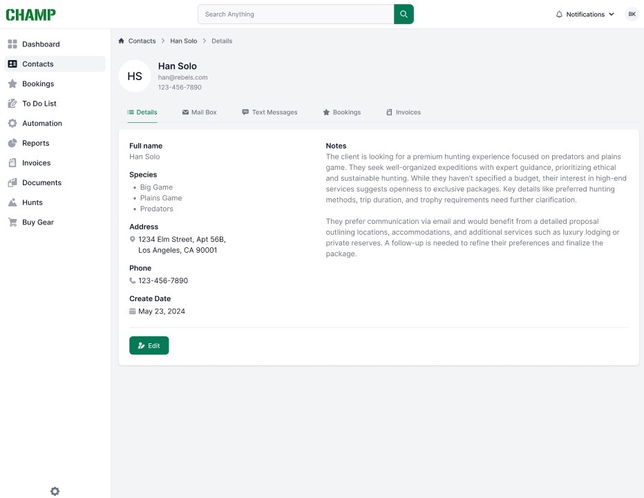 See, manage, and close more leads. Add notes. Log interested species, budget, and more. CHAMP HQ makes sure your team doesn't lose out on a potential sale.
